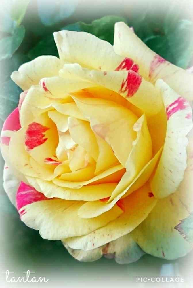 黄色に濃いピンクの絞りが入る素敵なバラ💕