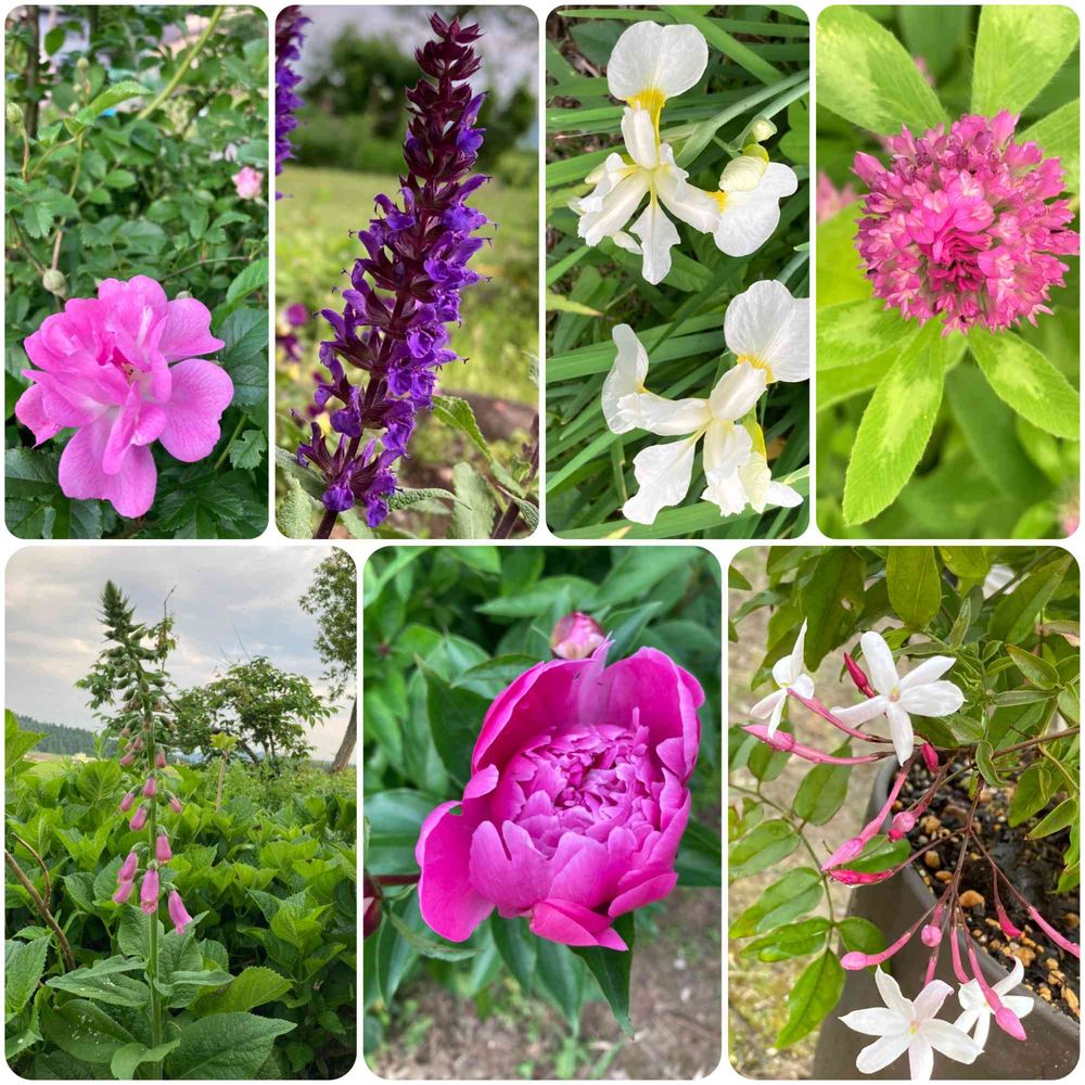 つるバラ、サルビア、シャクヤク