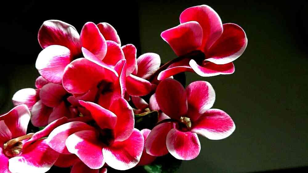 黒に映える赤と白のシクラメンがとっても魅力的ですね。