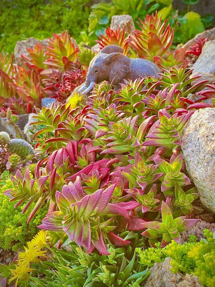 多肉のジャングルいいね👍まだ紅葉してるの❔元気モリモリだね❤️🐘さんが可愛い❤️💓😉✌️