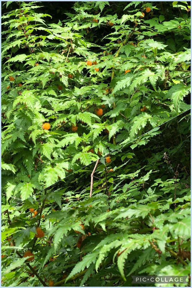 山道脇にはナガバモミジイチゴが沢山なっていて、このところ歩く人が少ないのか完熟したのが沢山ありました。