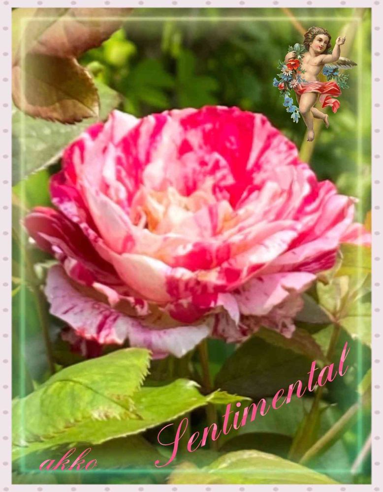 四季咲き丸弁絞り咲きバラ センチメンタルが咲き