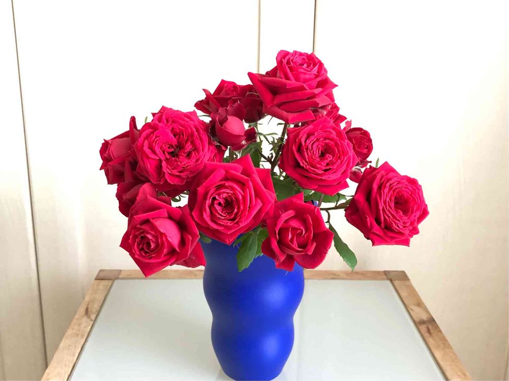 赤い🌹と花瓶の色の対比、もっと美しさ⤴️ですね‼️