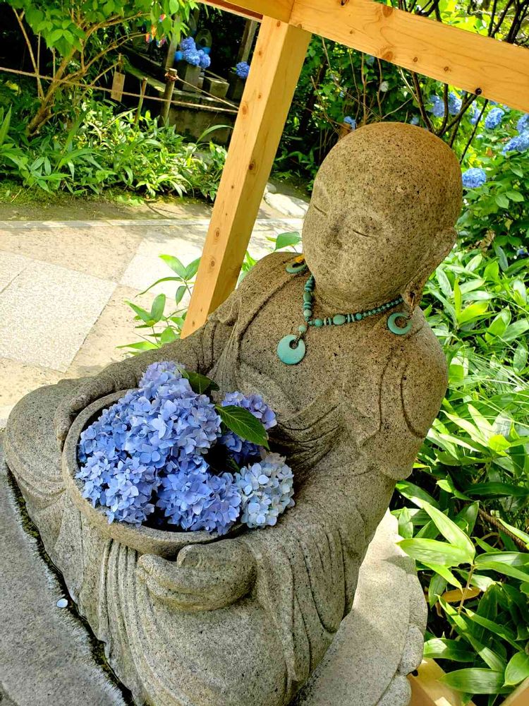 さん、そうですよ~💦アジサイの季節はアジサイですけど、他の時期もたぶん境内のお花が供えられてます😃花想い地蔵❤️可愛いでしょ!
