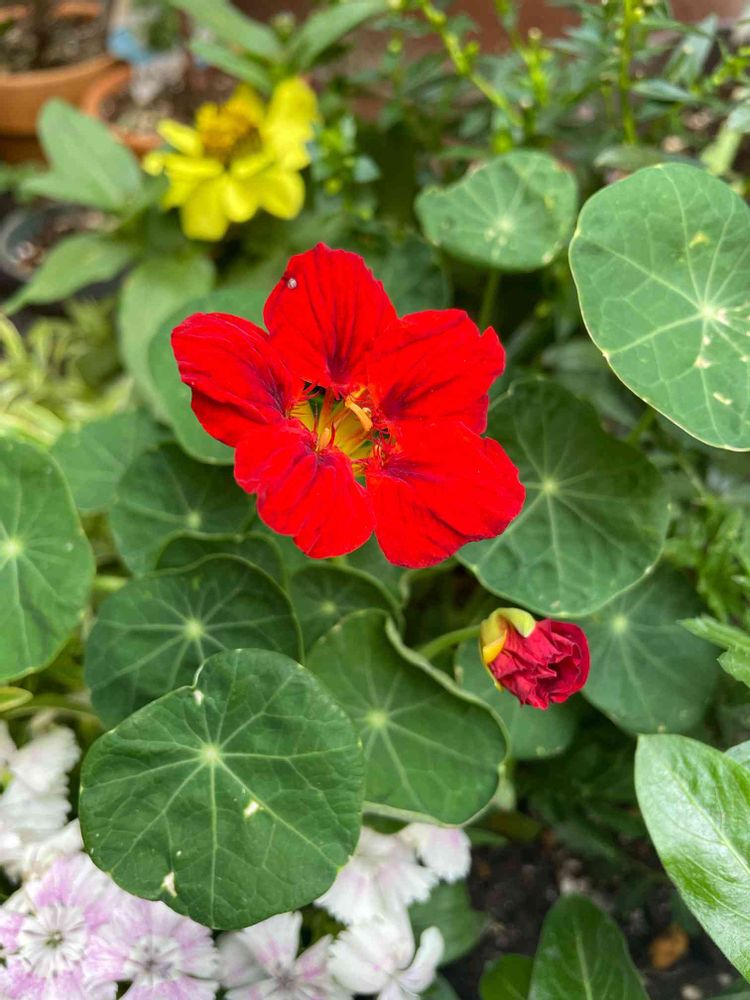 ナスタチウムてじっくり見た事無かったけど少し変わってる花だね!