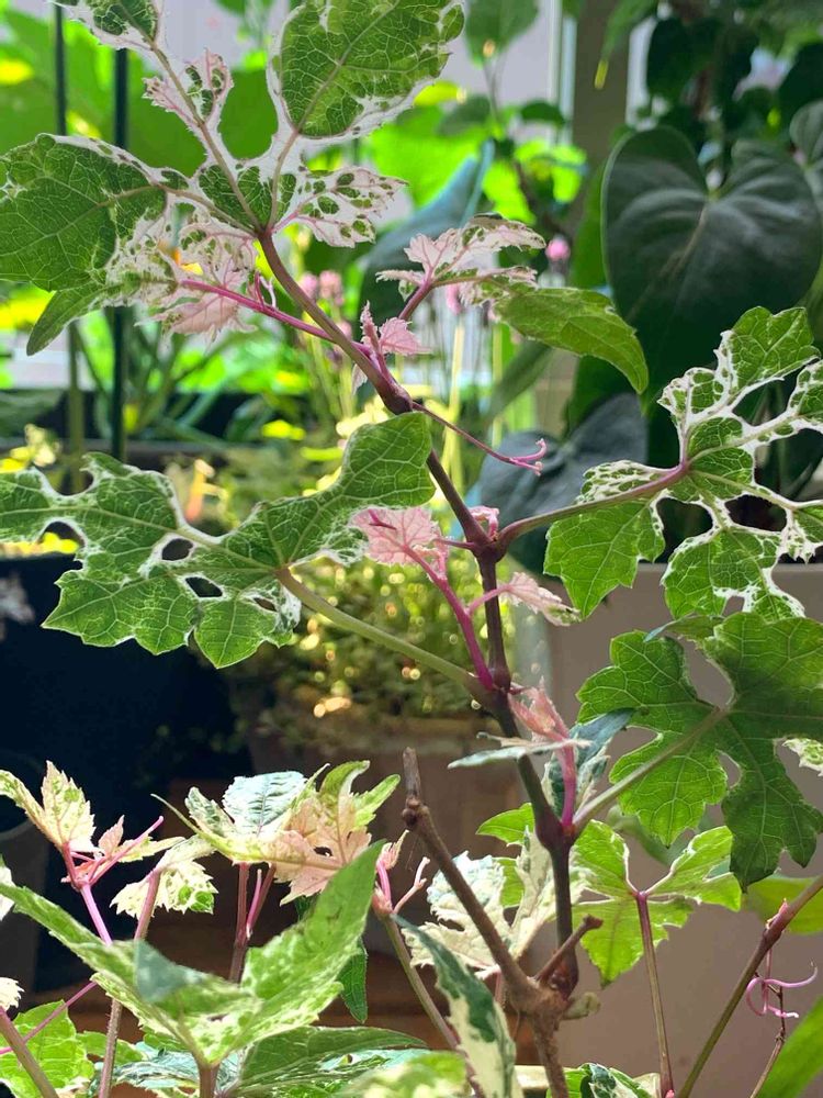 赤味をおびた新芽が美しい我が家のベランダ美人さん、斑入りの葡萄瑠璃姫🍇🌿