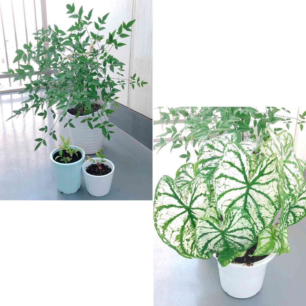 21時頃届いたちっこい3ツの南天さんとカラジウム