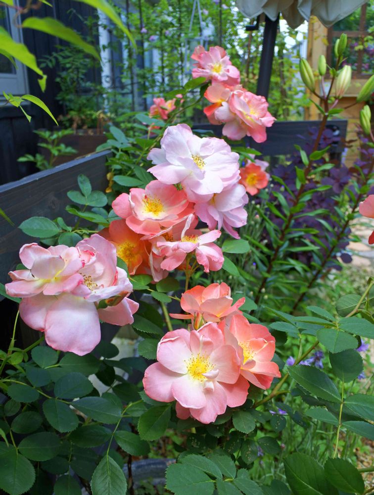 このアプリコット色から薄ピンクに色がぬけて房咲きがグラデーションになるところが可愛い(´艸`*)