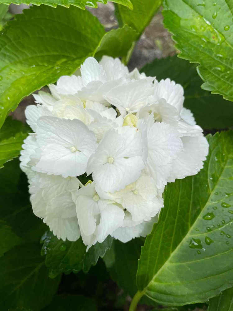 けがれのない純白色の紫陽花🥰でも2.3日後には花びらが茶色くなってしまうのはなぜ?他の紫陽花はもう少し長く綺麗に咲いてるのに🤔