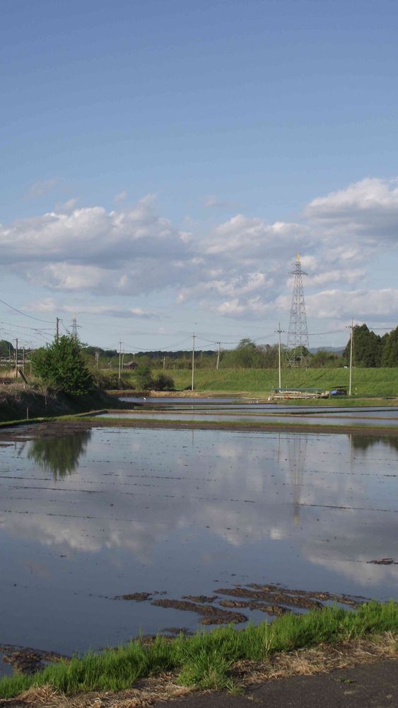 稲が伸びてきました、水面反射はもうすぐ見れなくなりますよ