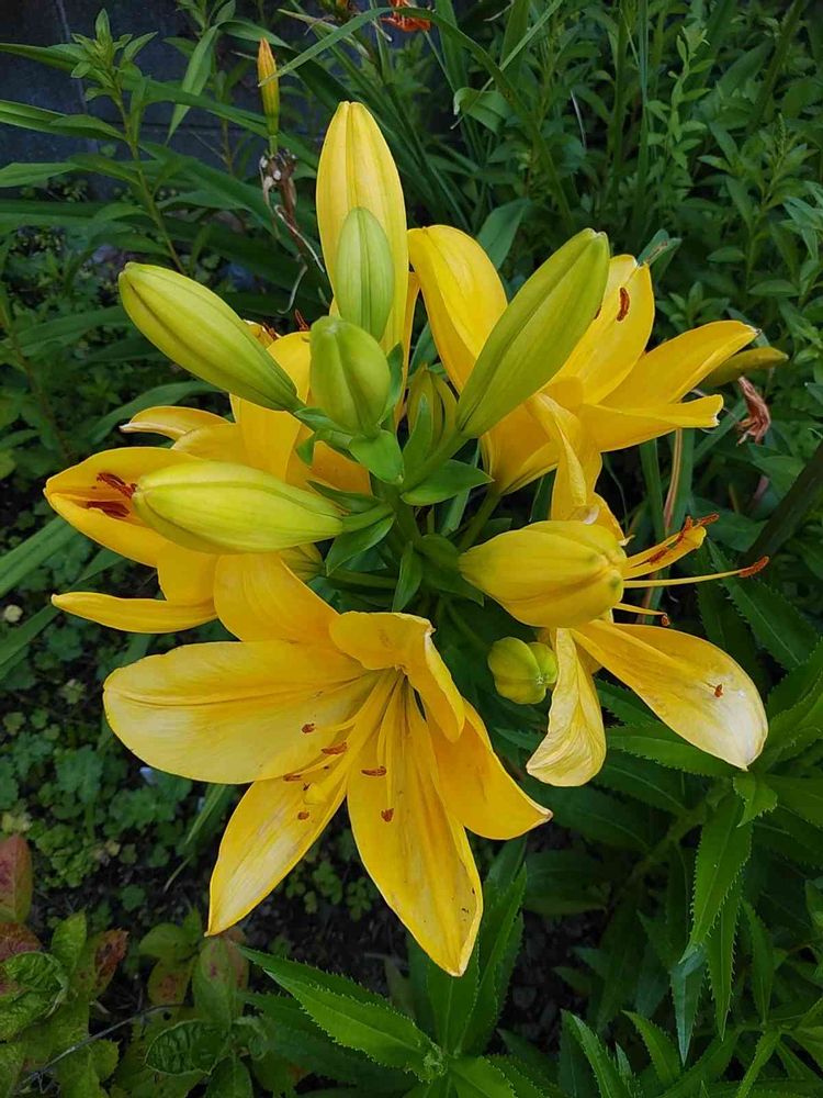 黄色いすかしゆり今年は1本の茎から14個の蕾が付き咲き始めました🤗🎶