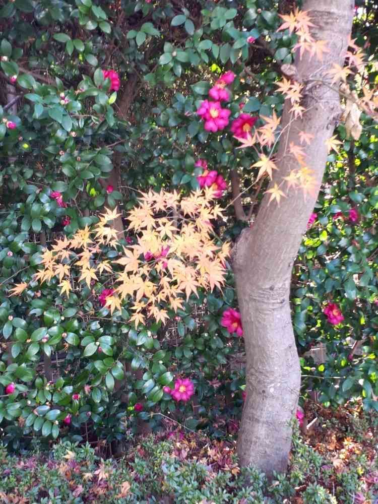 先日HCに行く道すがら、なんとなく遊歩道?っぽい所に山茶花の前に紅葉?があり、異種混合で良いなと思いました🌼💗🍁
