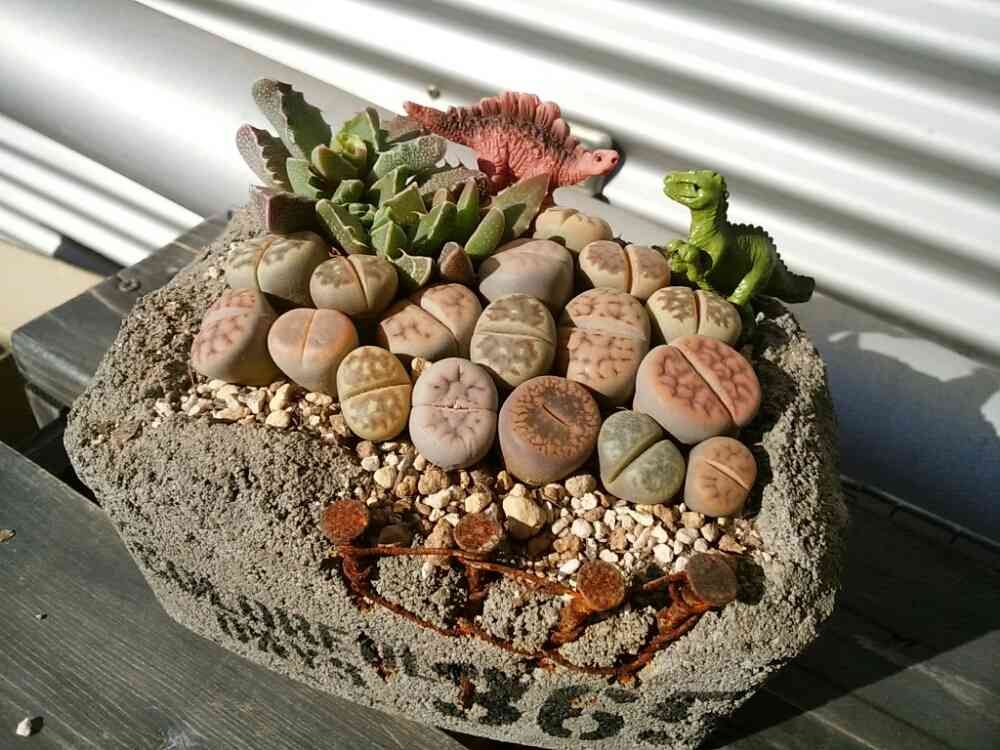 ikuraさんのコンクリ鉢にリトープスをツメツメ💞おしくらまんじゅうで寒さを乗り切ってーーー😂