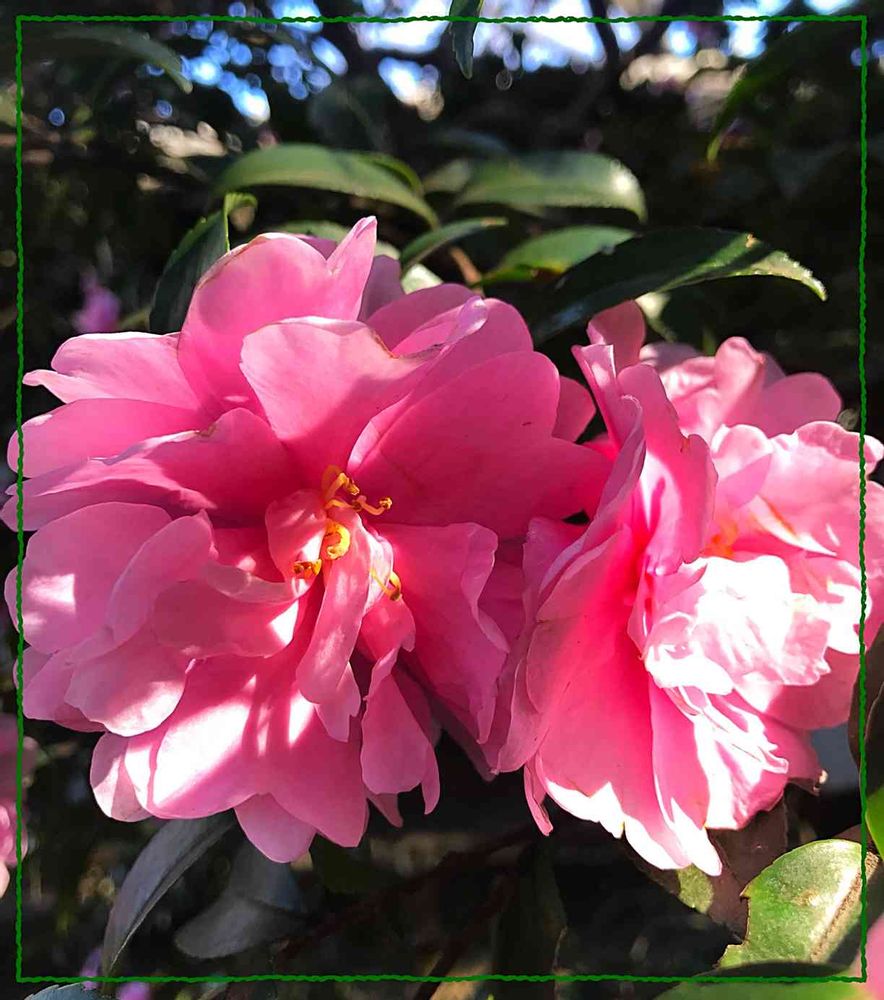 ピンクの山茶花、いい感じ😆💓⤴︎⤴︎