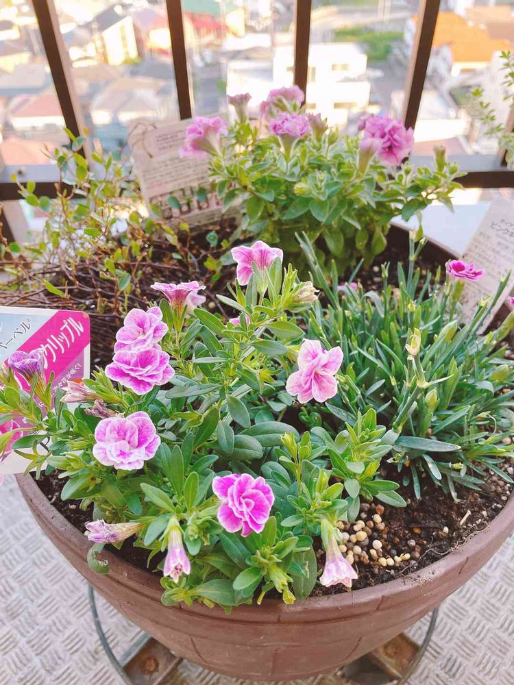 バルコニー/ベランダ,ペチュニア,ダイアンサス ピンクキッスの投稿画像