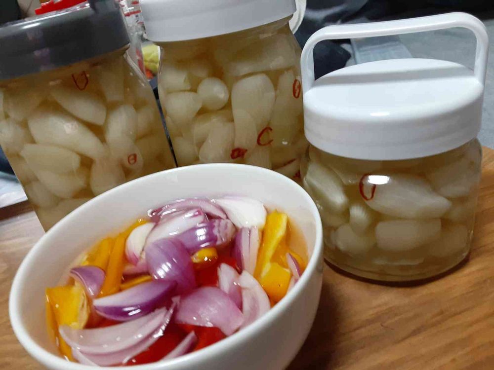 市販の漬け酢がおいしそうだったので、余り野菜でピクルスも作ってみた。