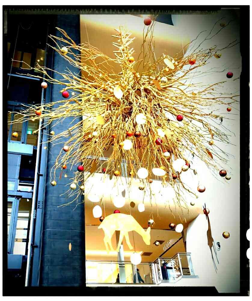 先日行ったお店の吹き抜けの所に、素敵なクリスマスのシャンデリアがありました。