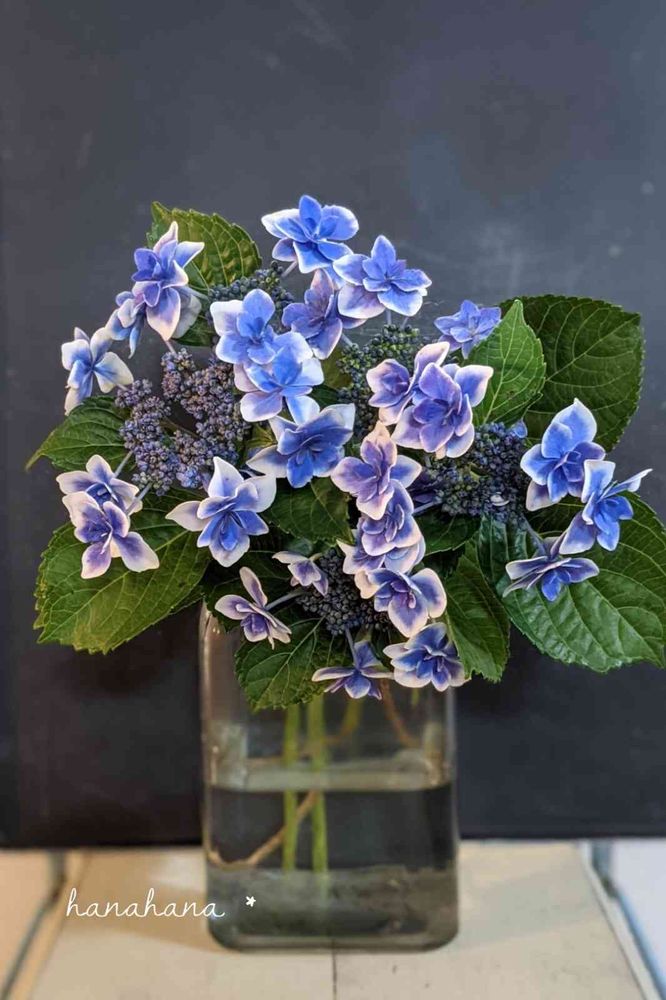 こんにちは☺️昨日は嬉しいお花のご縁でした💗我が家には無いお花を飾るととても新鮮で、ガク紫陽花もいいなぁ〜って思いました✨