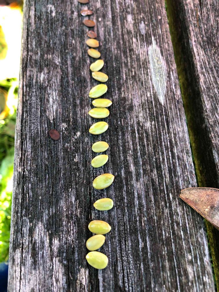 サヤの色に合わせて、🟢〜🟤と変化していくのが楽しくて、沢山剥いてみた時のpicです😊