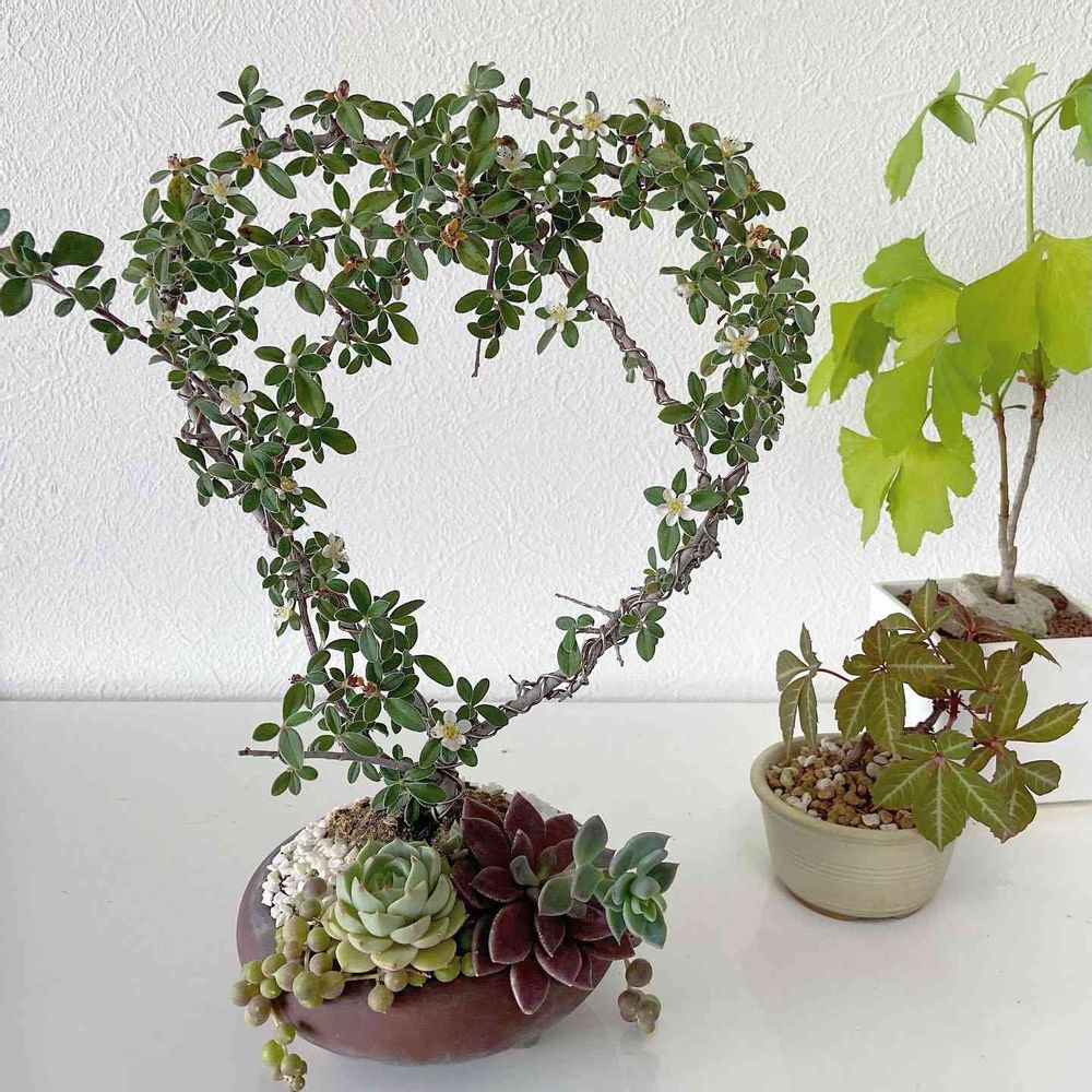 コトネアスターのハート型多肉コラボ盆栽🥰の途中経過😆