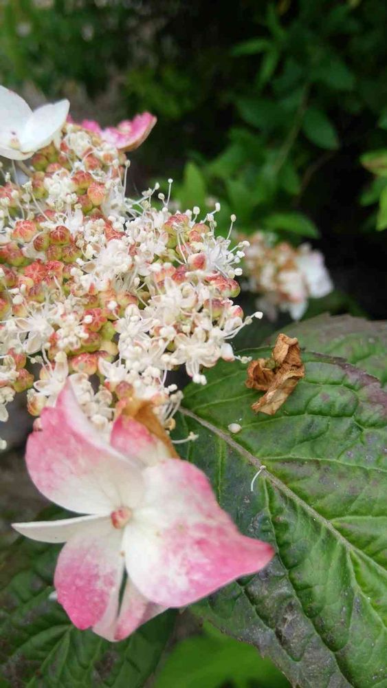 おはようございます ヤマアジサイの 色が変わり 顎の中が綺麗だなと💕😊