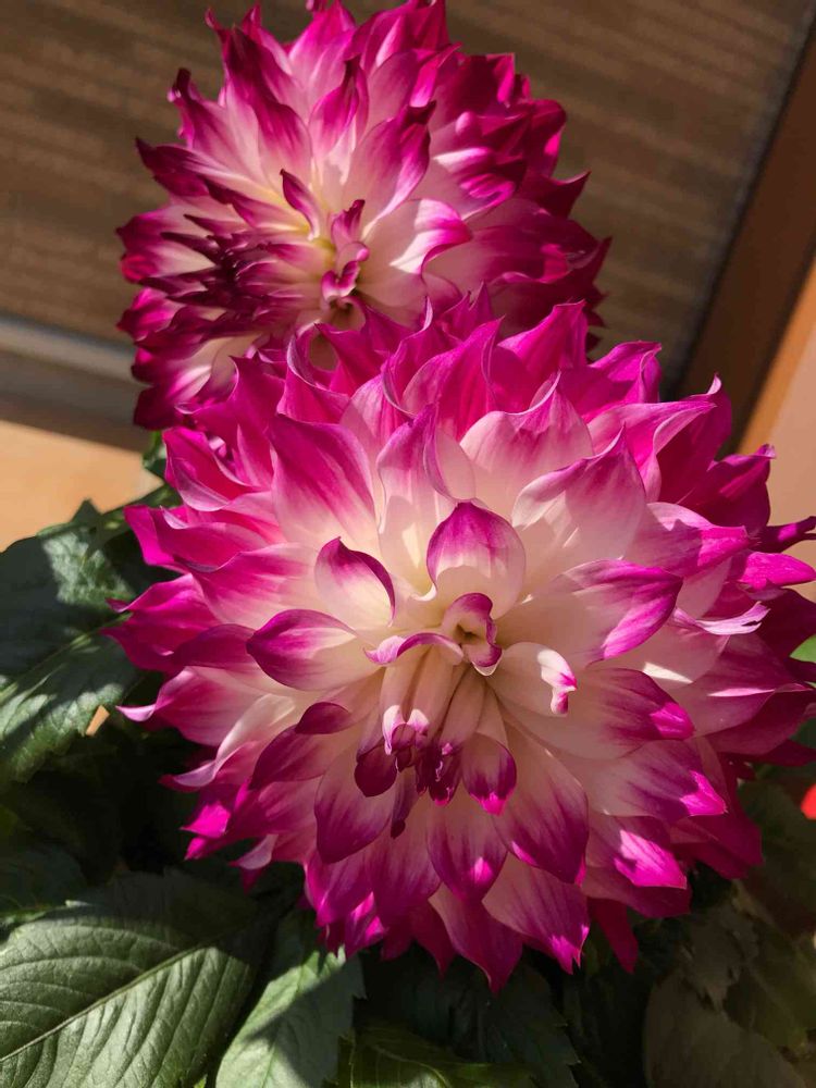 この間連れて帰ったダリアちゃんがポンポンと二つも大きなお花を咲かせてくれました✨🌸✧*。٩(´ヮ`*)و✧*。♥️