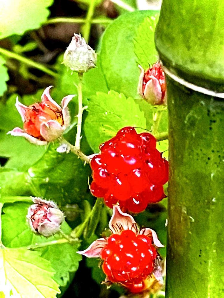 桃色のお花→果実は橙色から暗紅色に熟し食べられる。ちょうどイネの蒔く「苗代」を作る頃に果実が熟すのでナワシロイチゴの名がついた📖🌾美味🍓花実もkawaii💓