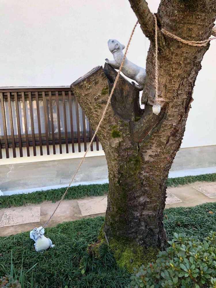 住宅地をいつものように散歩。我が家の近くのお宅。こんな「遊び心」のある庭だったのかと改めて感心する。樹木は葉が全て散って見どころはないが、アクションあるフィギュアからいろんなストーリーが浮かびます。