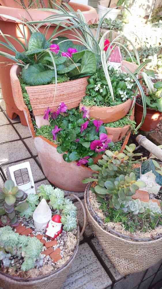 割れ鉢寄せ植え作ってみました(*'▽'*)