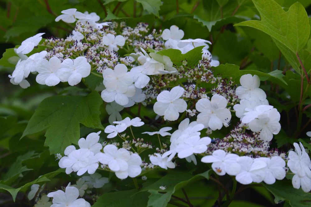花序に装飾花を持った白い花が多数咲く時期