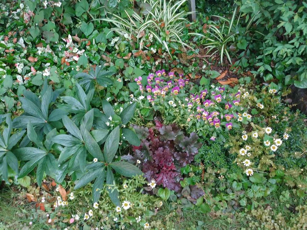 ヒューケラ・オリヅルラン・ビオラ‥‥クリスマスローズ‥ハツユキカズラ・ノースポール‥‥