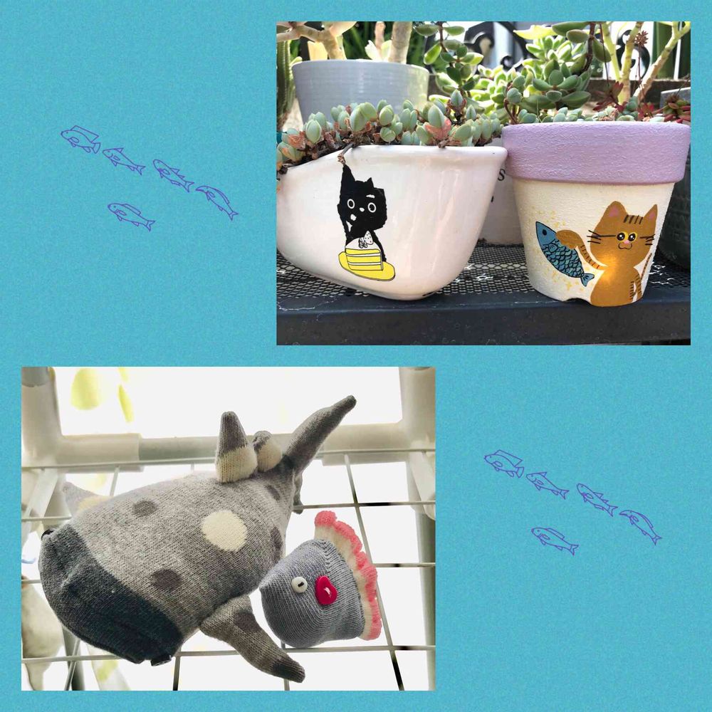 まつぴよさんの、ジンベイザメとpeanyatsの鉢とコラボだわ。