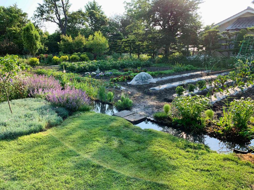 何年か前.せんぜ畑と庭の間に夫が川から水を引きました