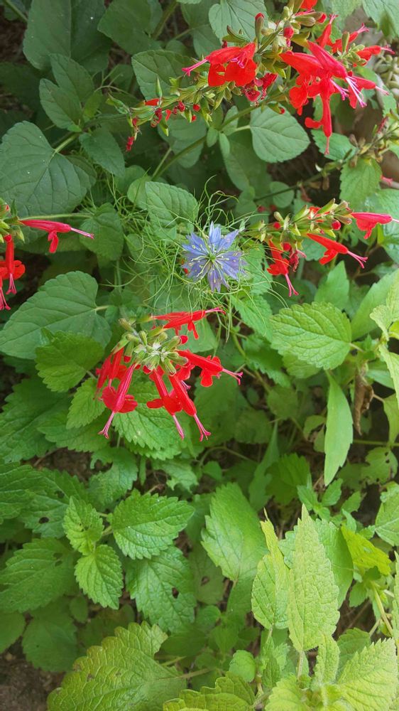 種から育てました。ニゲラは1つだけ、サルビアは種が落ちた所からです🥰