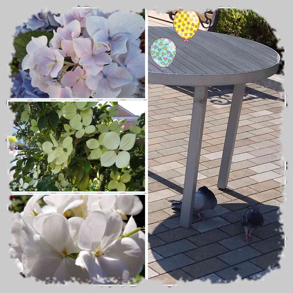 ちゃんと野外テーブルの下の日陰に…ウフフ…😀!🕊️🕊️…