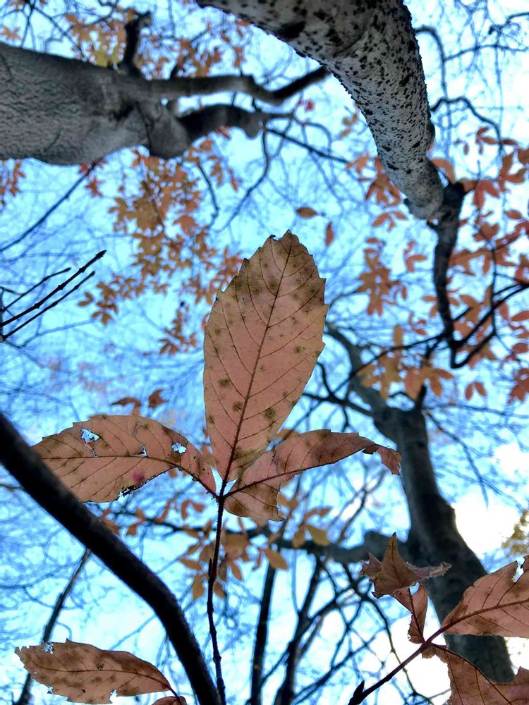 薄青い空と枯れ葉🍂がマッチしてますね💙