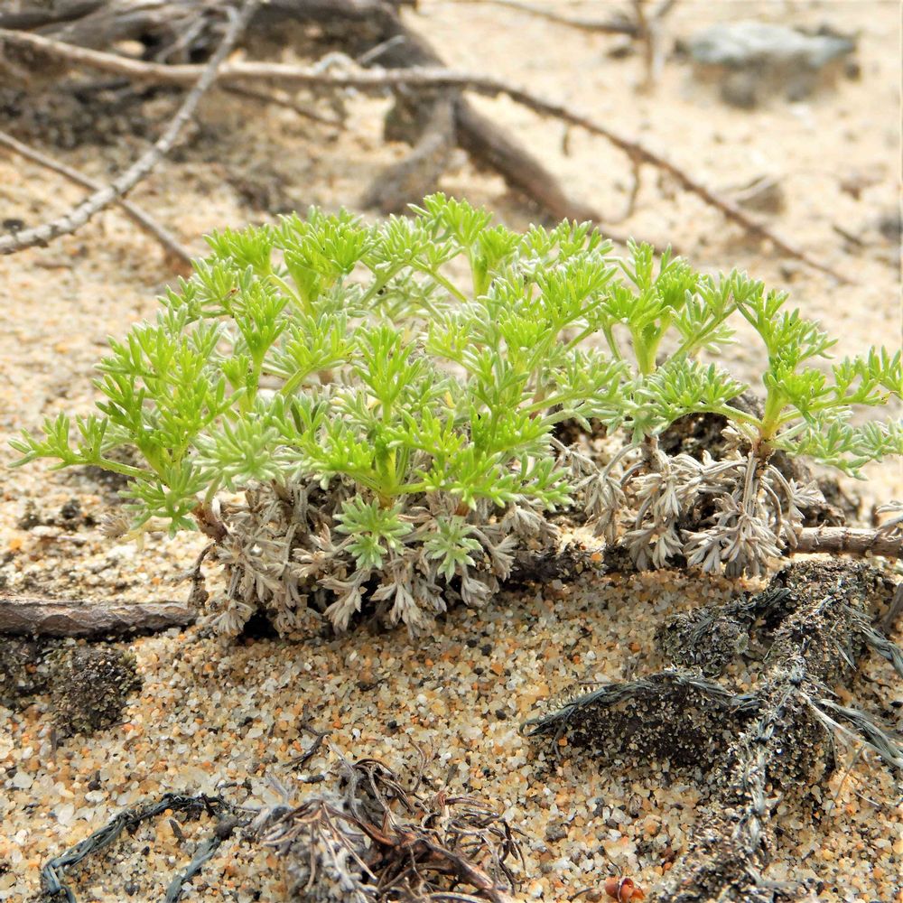 沿岸部の潮風や砂地の厳しい環境の中でカワラヨモギが可愛らしい姿を見せてくれていました。