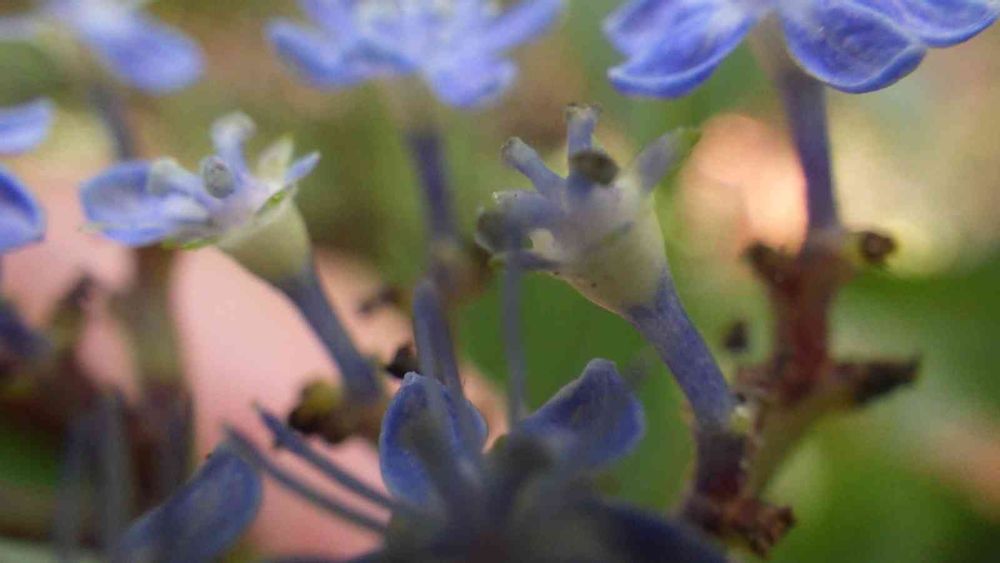 その山をヤマアジサイだらけにして何十年も経つから〜蜂が勝手に交配して、変な紫陽花が咲くのよって〜まだ!不完全な形をした紫陽花を見せてくれたよ。鬼ヤドちゃんの森でもそのうちそんな紫陽花が咲くかもね💕