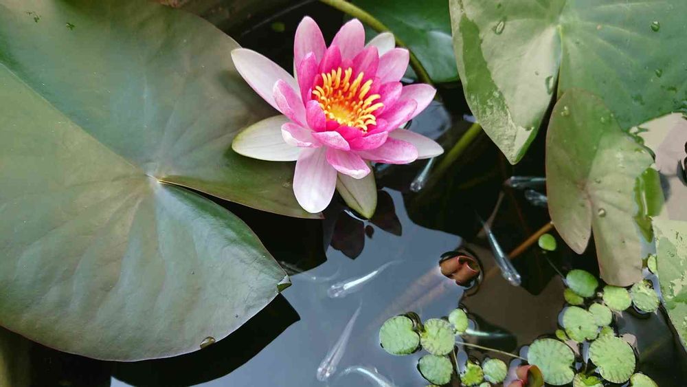 いいですね。やはりこの景色は風情があります。睡蓮の花が素晴らしいです。幹之メダカも素敵ですね‼️