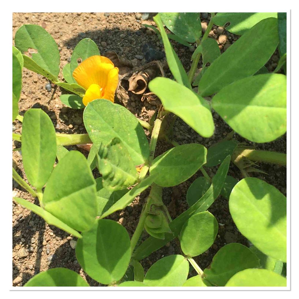 ポットで最も成長のよく、最初に畑に植えつけた落花生の花が咲いた
