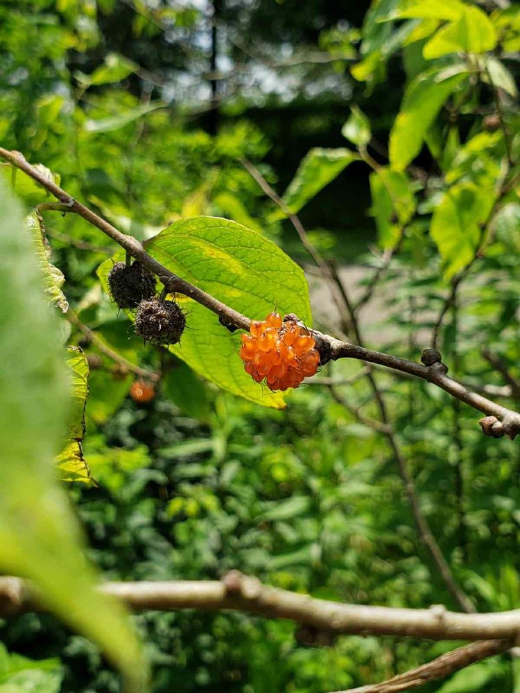ヒメコウゾの実を食べたことがあります。オレンジ色でなぜかネバネバ。🍊