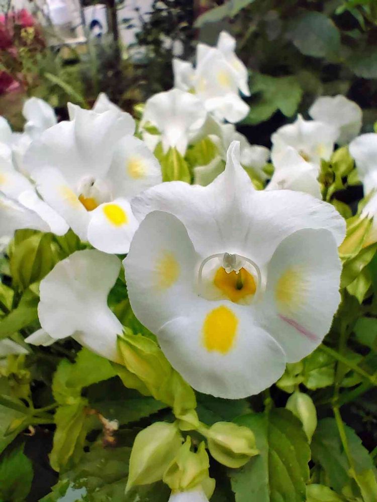 白い普通のトレニアだけど、花の中にトレニアリングが覗けるかしら🤩
