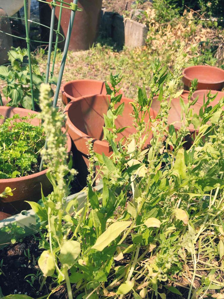 子供たち🧒が、お花🥀までみたいと言うので、ほうれん草の収穫を葉っぱ☘️だけにして、根っこ抜かずに放置したらこんなになった😂
