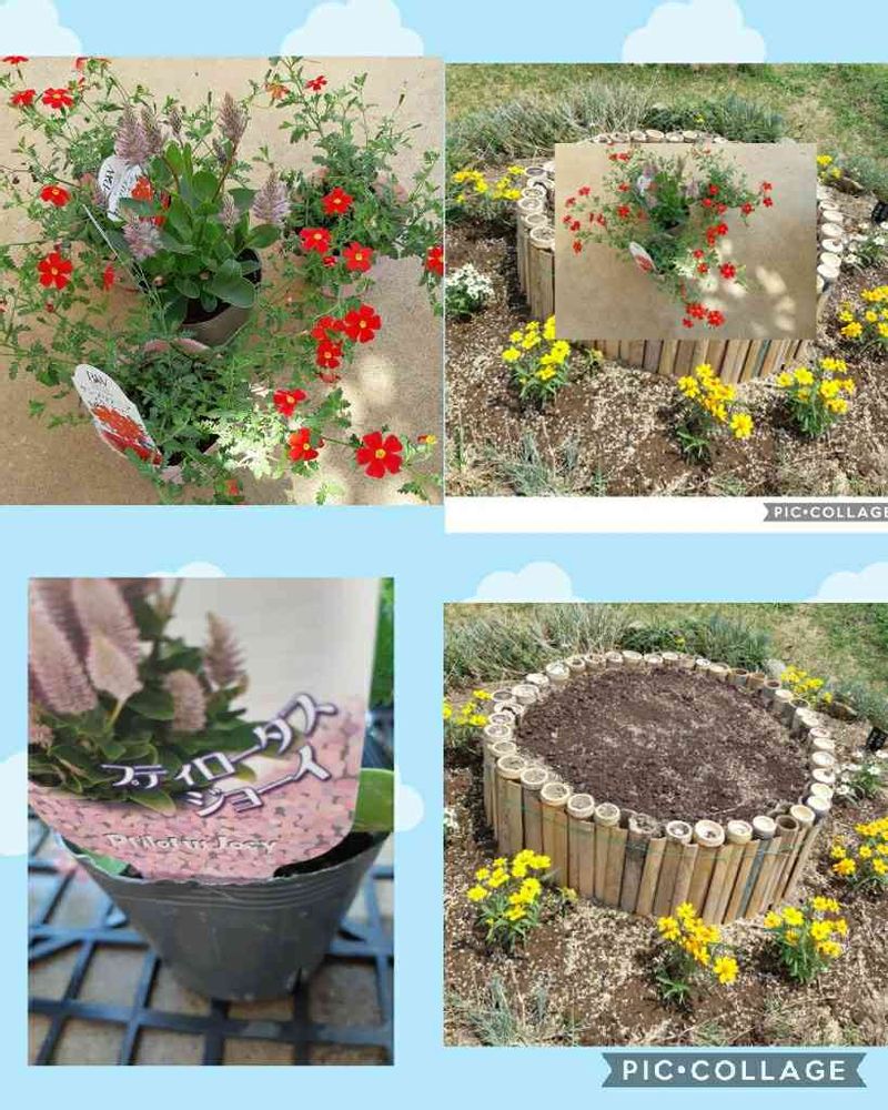 こんにちは👋😃今日は、31度に成る程☀️😵💦暑かったです。雨待ちの昨日、買ってきた花達です。ここに、植え付けます。フワフワした毛のようなプティロータスジョーイ、赤い小さな花、サンブリテニアスカーレット、と、いう名前です。明日午前中植え付けようか、と、言ってます。午後から雨模様?みたいですが、どうかしらね。周りが、日曜日買ってきた花達です。小さいので、お互い邪魔に、ならないように咲いてくれたらと、思っています。