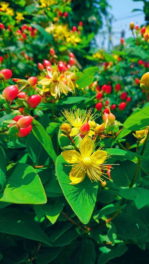 黄色いお花と赤い実が🍒☆ °
