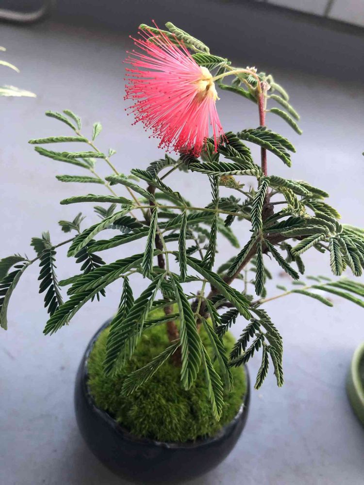 夕方になって、葉が閉じて緋色のお花が咲いた〜!かわいい!
