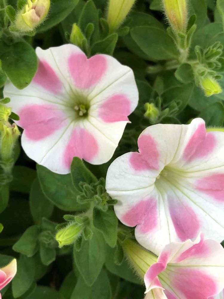 白で縁がピンクのペチュニアが、徒長して来たから、カットしかけたけど、種を取ろうかなと、途中でやめて、玄関から庭に持ってきました。🤗