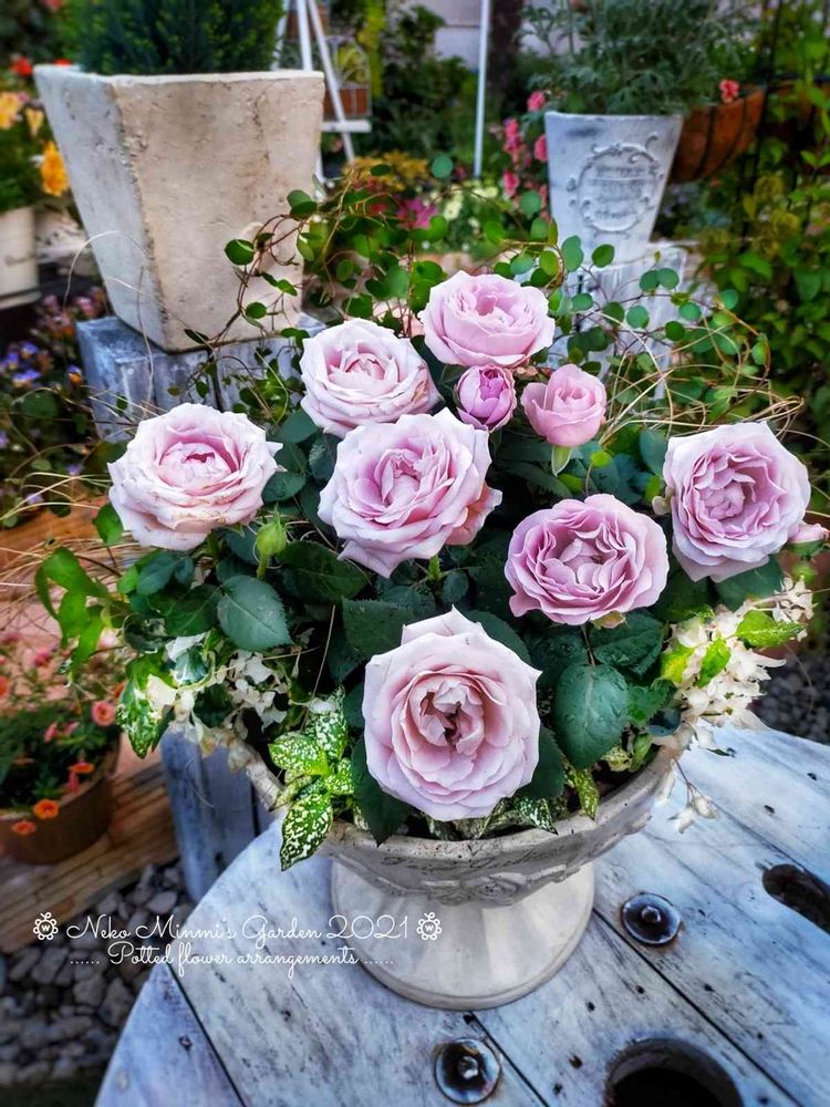 この薔薇は、お店で見掛けた時には既に綺麗に咲いていて、連れて帰って速攻から、寄せ植えしたんですょ〜(〃^ิ艸^ิ〃)ウフフ♡