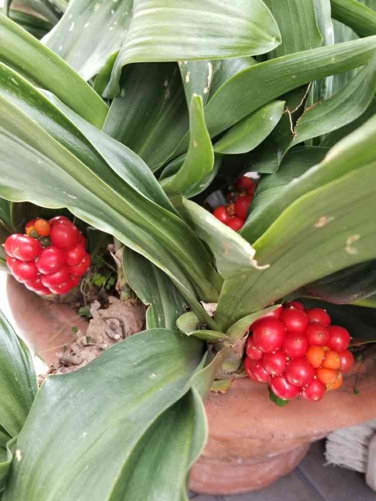 義母がお嫁に来た時に義母のお母様が持たしてくれた、おもとなんですって。実をつける事はその家が繁栄するようで毎年気を付けて育ててます。