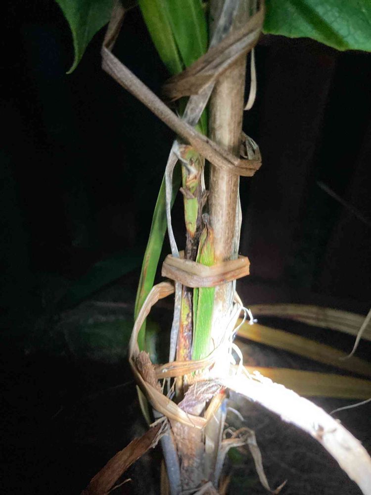 先日葉柄が折れたシルバークイーンですが、保定した部分の中を新芽が伸びて来ました‼︎